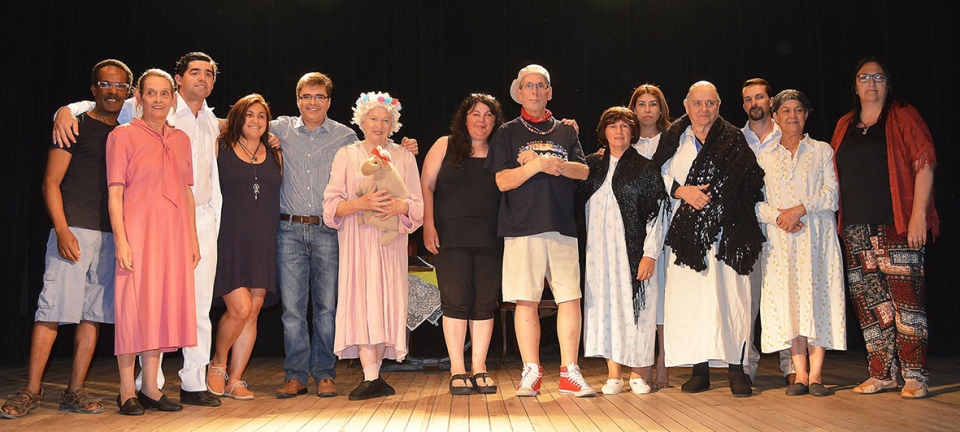 En la foto de la noche de presentación de la obra en Cardona se aprecian a ex integrantes junto a los actuales del grupo: Valentín Correa, Mónica Enrique, Carlos Daniel La Paz, Bettina Clavel, Pablo Ponce, Marisa Estévez, Rosana Hernández Sopena, Enrique Sena de León, Shirley Castillo, Sari Cartagena, Mary Soler, Octavio Pereyra, Daisy Janavel, Ana González Paolino.