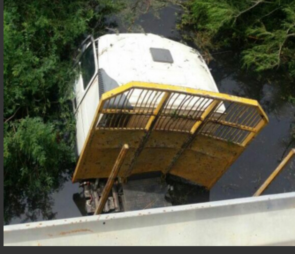 Un camión destinado al transporte de palo que había dejado su carga en Montes del Plata cayo a las agua del Arroyo del Medio y su conductor resulto con diversos politraumatismos. El accidente ocurrió en la ruta 55, kilómetro 43.800 y de acuerdo a declaraciones del conductor el accidente se habría producido por el desnivel al ingreso al puente. Lo cierto en que la cabina quedo en medio del Arroyo del Medio y la zorra cruzada en el ingreso al puente cortando la ruta. El conductor que trasladado a Cams Rodó donde se le diagnostico politraumatismo varios sin pérdida de conocimiento, corte en antebrazo izquierdo, corte en arco supercilial. |