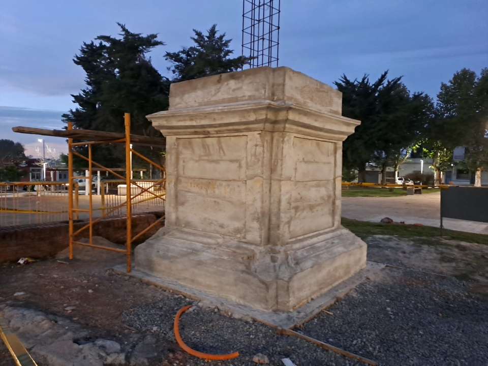 Los trabajos en el sector central de plaza “Rivera” de la ciudad de Mercedes, los realiza personal municipal bajo la supervisión del artista Federico Gauthier quien está a cargo de la confección tanto de la columna como de la estatua.