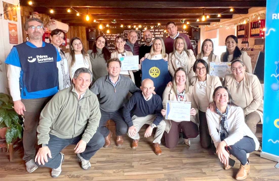 Integrantes del directorio de Creditel han venido realizando en el correr del año giras por el interior donde se reúnen con quienes cumplen tareas en diferentes puntos del país. En esta oportunidad, Marcelo Parodi y Pablo Ruiz, junto a Mayra y Luján que pertenecen a otras gerencias de la firma, estuvieron en Mercedes reuniendo a los equipos de esa ciudad, Dolores y Fray Bentos, dialogándose temas propios de la empresa y en esa ocasión se entregó en nombre de Rotary, PVTEA y de la Fundación Pérez Scremini, un diploma de reconocimiento a Marcelo Parodi, haciéndolo extensivo a todo Creditel que siempre está presente para apoyar las diferentes acciones de servicio. |