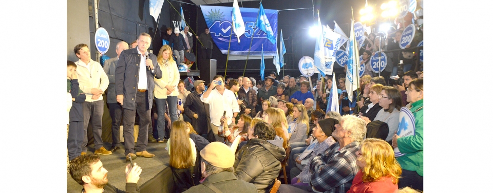 Con la presencia de banderas de todas las agrupaciones que respaldan su fórmula, se desarrolló anoche en sede del club Peñarol, el acto final de cierre de campaña en Soriano. Delgado que estuvo acompañado en esta oportunidad por numerosos dirigentes, explicó a un público fervoroso las bases de su estrategia y se movió en todo momento seguro del resultado en las internas del domingo 30. El ex ministro de Defensa Javier García y el intendente de Colonia Carlos Moreira, compartieron el estrado principal en el que los cabeza de lista se presentaron a modo de respaldo. |