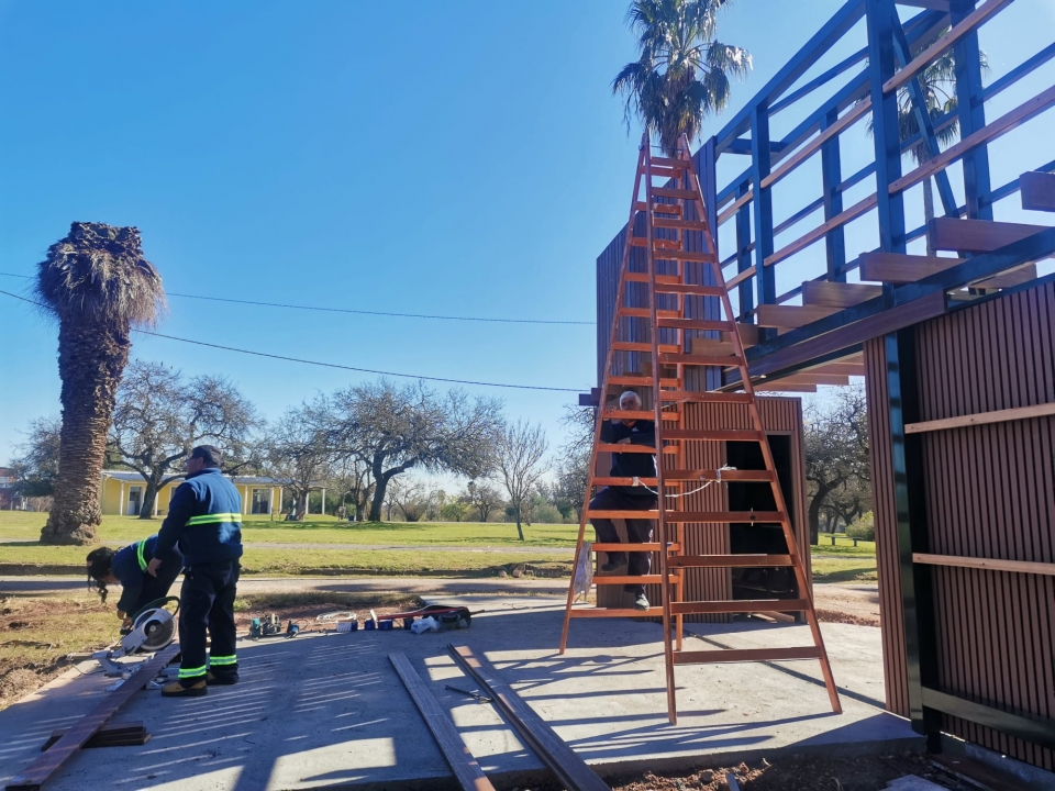 En ese sentido, se construye el pórtico que determinará el nuevo acceso a la reserva, estando ubicado por el bulevar que conecta el castillo con la costa del río Negro.