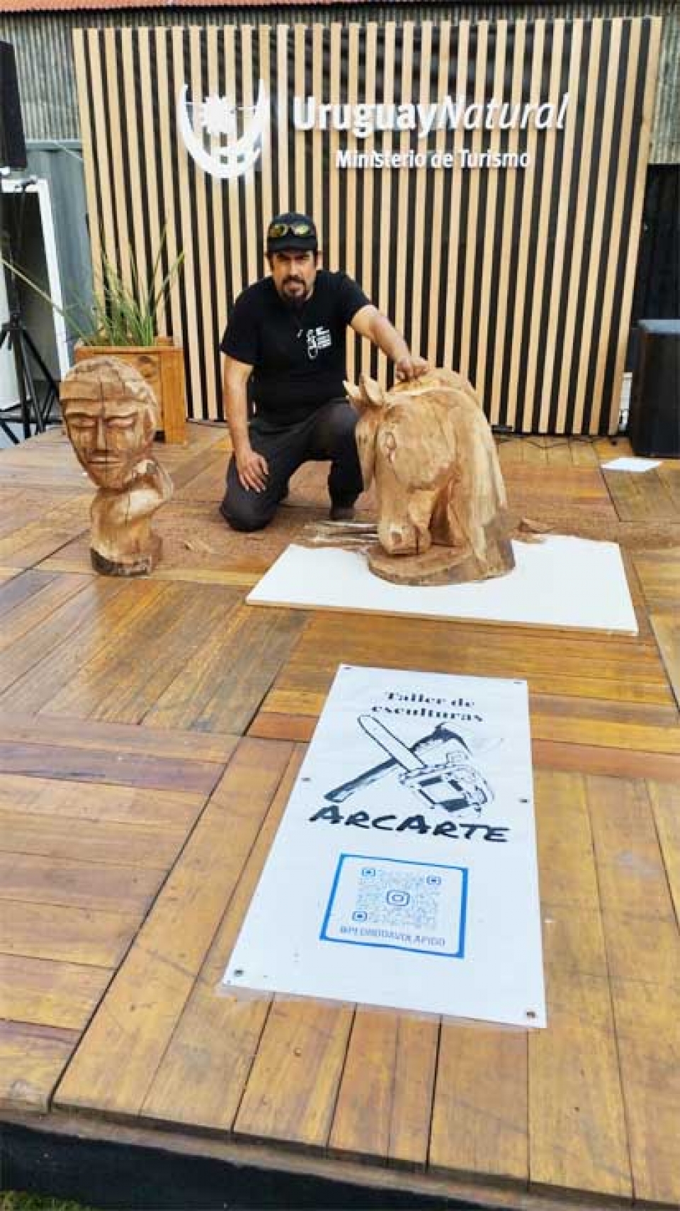 Uno de los impulsores del Encuentro de Escultores que año a año se realiza en Palmar, estuvo trabajando en vivo en el stand del Ministerio de Turismo en El Prado. Pedro Lapido diseñó una cabeza de caballo y una imagen indígena. Mucho público siguió con atención cada uno de estos momentos. |