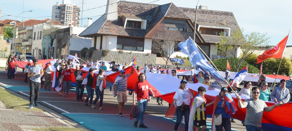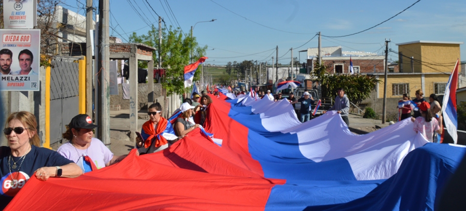 Por diferentes calles de Mercedes se apreció el desplazamiento de lo que se denomina “El gran Banderazo Frenteamplista” que en cada elección nacional recorre las capitales departamentales. Llegó a Mercedes y tras partir desde Aparicio Saravia y Pozzolo, fue pasando por diferentes barrios hasta culminar en la zona del puerto de Mercedes con cuerda de tambores. |