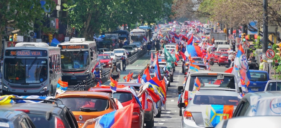 Pablo Mieres acompañado de Mónica Botero recorrió desde la rambla hasta la plaza Varela de Montevideo, recogiendo apoyos y cruzándose con la que convocó el Partido Nacional con la promesa de Mieres de apoyar a cualquiera sea el candidato de la oposición, en una eventual segunda vuelta electoral.