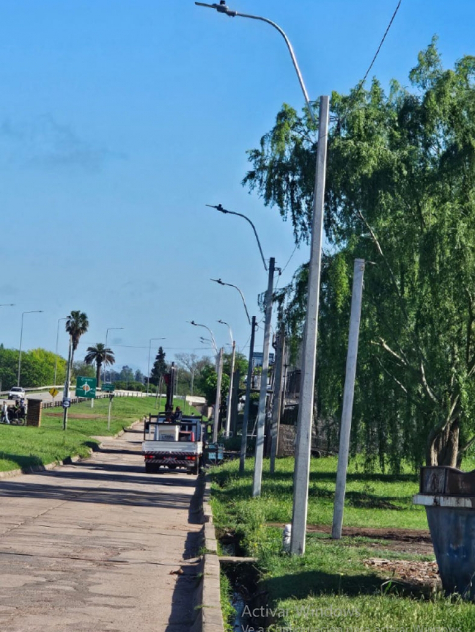 En todo ese tramo se colocaron 20 columnas con los focos y la correspondiente línea para la alimentación eléctrica con cable preensamblado de aluminio.