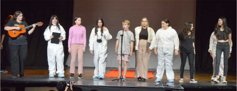 En el marco del proyecto “Clubes de Arte” que lleva adelante ANEP, estudiantes de los liceos de Cardona, Rodó y Palmitas, presentaron anoche sus trabajos en el teatro 28 de Febrero. En todos los casos, los estudiantes centraron su eje temático en la salud mental, contando con la coordinación del psicólogo Diego Alvarez. |