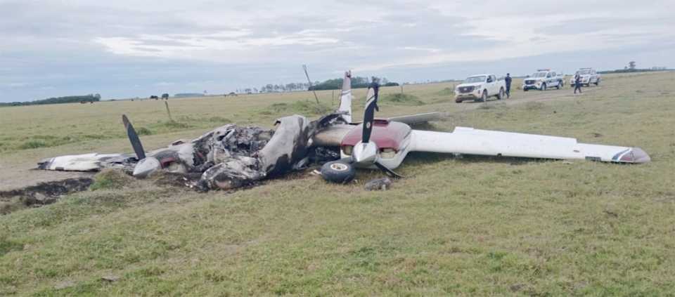En la mañana de ayer personal policial de Treinta y Tres junto a efectivos de la Fuerza Aérea se trasladaron hasta campos ubicados en la zona conocida como “Cuatro Vientos” a unos 3 kilómetros del camino Arrozal Treinta y Tres. Allí se encontraron con una avioneta bimotor que había tomado fuego, manejándose diferentes hipótesis. En un primer momento se pensó que ésta había caído, pero luego vieron que muy posiblemente aterrizó y tras esto se produjo el siniestro, pero a la llegada de los uniformados no ubicaron ni el piloto, ningún elemento de la tripulación y tampoco documentos que permitan identificar la aeronave. Extraoficialmente se supone que se está ante un hecho ilícito, pero ahora se trabaja intensamente para establecer si se transportó algo en la aeronave y qué fue lo que realmente pasó dado que el fuego afectó gran parte de la misma. |
