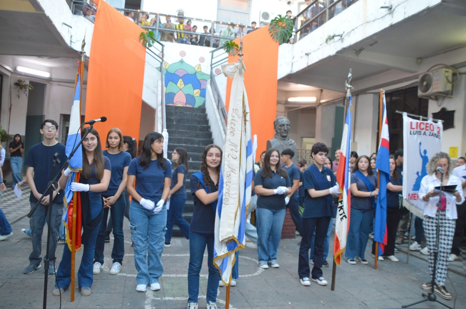 El centenario edificio del liceo Nº 2 de Mercedes recibió ayer a estudiantes, familiares y amigos de la institución, integrándose en un acto final de cierre de cursos. Su directora, profesora Soraya Chocho, señaló a Crónicas que “estos días son momentos de evaluación, reflexión y agradecimiento, cerrándose de esta forma los cursos, aunque tenemos 15 días más de acompañamiento pedagógico para aquellos estudiantes que no alcanzaron los niveles de suficiencia. (nota completa en la edición papel) |
