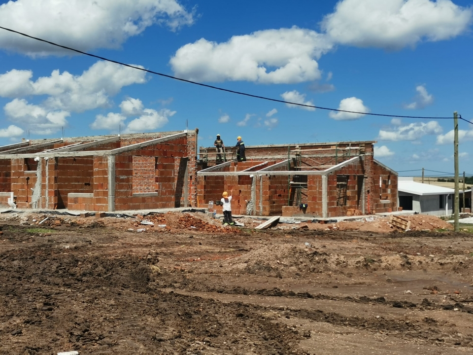 Progresan las obras de las 152 viviendas enmarcadas en el plan “Avanzar” en la ciudad de Mercedes, en el predio situado al sur de calle Sarandí, en el barrio “Jardines del Hipódromo”.