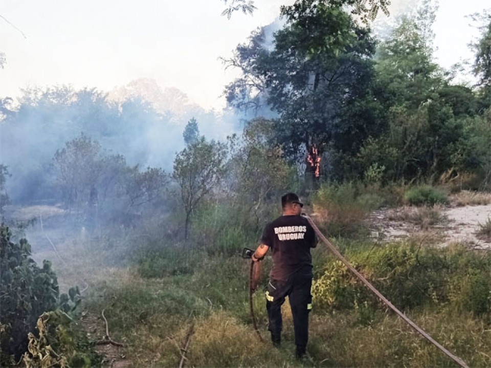 Un incendio forestal que afectó unas tres hectáreas de monte en la zona de playa de la Agraciada fue controlado por los bomberos y personal de la Intendencia de Soriano. El foco ígneo se inició ayer a la tarde, demandando una importante labor para su extinción, sobre todo entrada la noche. Los bomberos de Nueva Palmira recibieron apoyo del destacamento de Dolores, así como funcionarios del Dpto. de Obras de la comuna y de la Junta Local de Agraciada, logrando controlar el incendio. Ya en la mañana de este viernes se siguió trabajando con maquinaria vial para remover troncos y vegetación con pequeños focos, tapando con arena, de manera de poder extinguir el siniestro totalmente. Las acciones fueron seguidas en el lugar por el intendente Mariano Rodríguez junto a jerarcas de la comuna. Lo afectado es principalmente monte natural, algunos eucaliptos y vegetación seca, no reportando mayores afectaciones ni tampoco la extensión a zonas de uso público. |