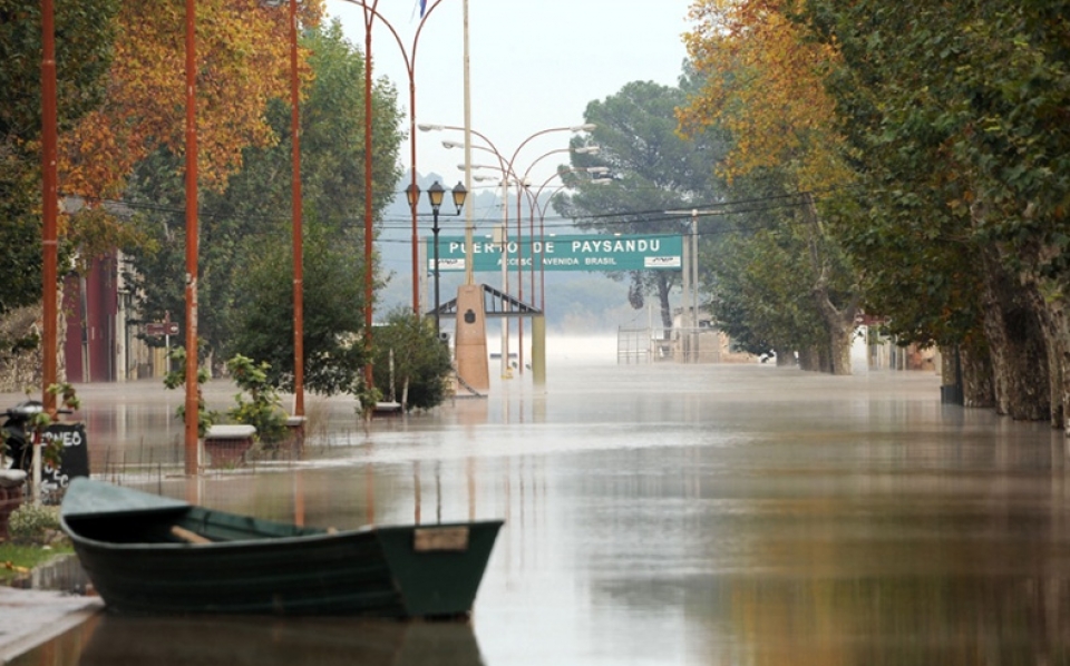 En Bella Unión, Artigas, Salto y Paysandú se comenzaron a presentar problemas como consecuencia de la abrupta crecida del río Uruguay. En la capital sanducera la cota de seguridad está en los 6,50 m., estimándose que para el próximo domingo llegará a 6,70 m. provocando más evacuaciones que obligaron a la apertura de refugios en coordinación con el Mides. Según El Telégrafo, la peor posibilidad es de que se junten las dos emergencias, en referencia a la creciente y el alerta roja por frío extremo. El pico se espera para el sábado lo que podría obligar a 150 familias a dejar sus viviendas. En la zona de San Félix se instaló la carpa del ejército a unos 200 metros del cruce con el camino a Casablanca donde se alojan varias personas. |