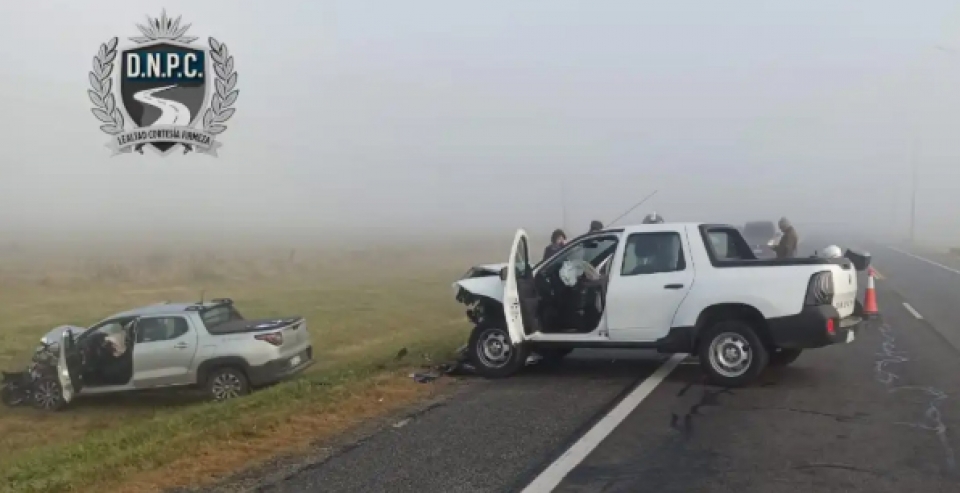 Un choque frontal entre dos camionetas se registró este martes de mañana en el kilómetro 240 de ruta 2 próximo a Palmitas. Una de las involucradas en el siniestro es la directora municipal de Deportes Noemí Viera, quien fue trasladada a un centro asistencial de Mercedes y afortunadamente solo presenta algunas contusiones. El conductor del restante vehículo, también fue trasladado a un centro de salud con algunas lesiones. Eran los únicos ocupantes de los vehículos. La niebla que cubrió gran parte del país generó muy baja visibilidad.