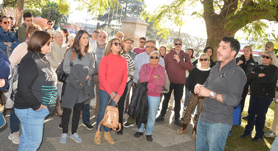 Un nutrido grupo de personas de todas las edades, incluso de turistas españoles, se sumó a la propuesta del profesor Santiago Zefferino, quien retomó las recorridas históricas por diferentes puntos de Mercedes, planteándose una charla abierta sobre hechos vinculados a la ciudad. Zefferino indicó a Crónicas que “una vez más la idea fue un éxito, tuvimos muchísimo acompañamiento, estuvieron incluso turistas españoles y se generó un ida y vuelta en el diálogo muy interesante, porque tras la charla que yo iba dando, aparecían aportes de muchos de los presentes. En esta oportunidad, la temática estuvo referida al primer cementerio de Mercedes, también al primer auto, a los fusilamientos de la Guerra Grande, las epidemias que afectaron la ciudad, los asesinatos en plaza Independencia y el atentado del MLN”. El docente viene preparando otras instancias que se irán comunicando oportunamente y sin dudas seguirán generando el interés de muchos. |