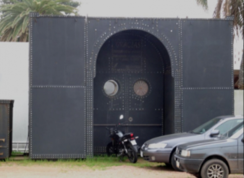 Juan Albini un artesano de Salto, recolectó durante años chatarra de barcos y trozos de metal de varias toneladas, con las cuales terminó fabricando una gigantesca puerta coronada por un arco y accionada mediante un sistema hidráulico que permite abrirla a través de una llave especial.