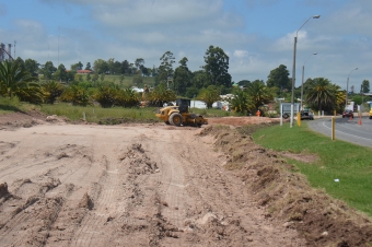 Quienes transitan por ruta Nº 2 pueden ver ya la planta de hormigonado y el desvío.