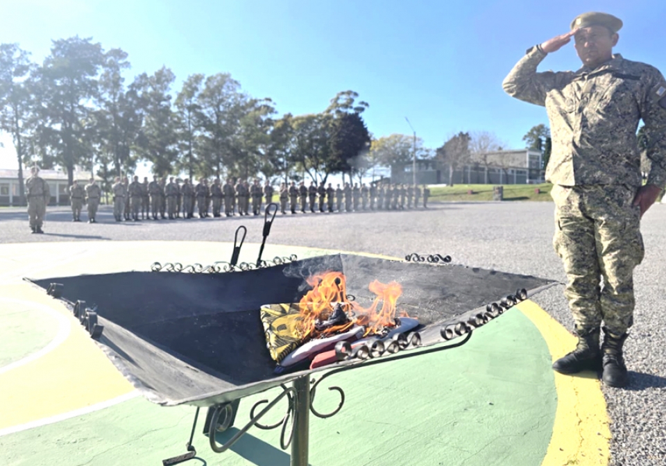 En el marco de la recordación del 175º aniversario del fallecimiento del General Artigas, en el Batallón Asencio se cumplió una ceremonia donde el jefe de la Unidad Teniente Coronel Eduardo Mendoza, acompañado de efectivos, llevaron adelante la tradicional ceremonia de incineración de los Pabellones patrios que están en desuso. Las cenizas luego se guardan en una urna y se depositan en un lugar especial ubicado en la propia Unidad. En Fray Bentos se realizó similar actividad en Batallón Rincón. |
