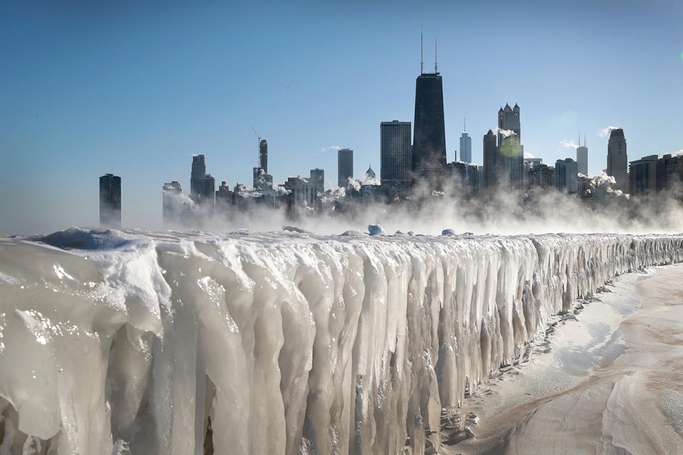 Michigan está sufriendo heladas pocas veces vistas, al punto de congelarse el famoso lago que lleva su nombre, uno de los cinco grandes lagos de Estados Unidos. Con un volumen de casi 5.000 kilómetros cúbicos de agua y una superficie similar a la de Croacia, las imágenes lo mostraron ayer totalmente congelado. La contracara de nuestra zona donde ayer las temperaturas tocaron los 35º. |