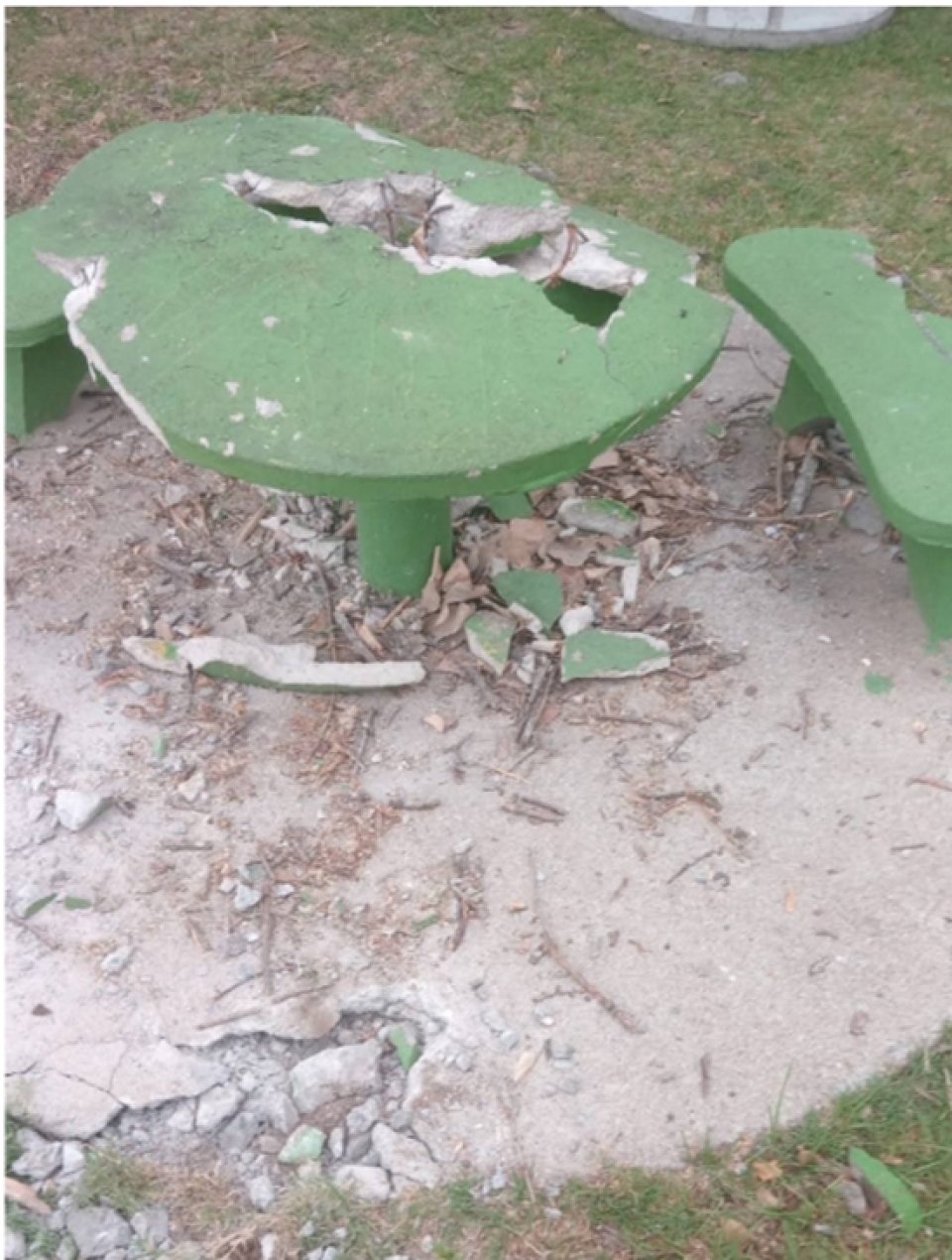 Los mal entretenidos de siempre provocaron destrozos en mesas y bancos instalados en la Isla del Puerto.