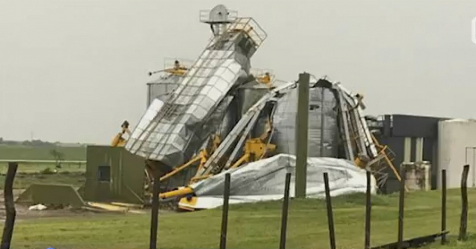 En la radial de nuevo Berlín hubo serios destrozos por el mini tornado que se registró en la madrugada. Fue sobre las 5 y afecto la planta de silos de la aceitera argentina Panamix. Los serenos se refugiaron en la planta pero un contenedor de grandes dimensiones fue dado vuelta completamente. No hubo lesionados, pero sí gravísimas pérdidas. Aseguran que los viewntops superaron los 100 kilómetros, pero no se habría configurado la característica de tornado. De cualquier manera los resultados fueron muy serios; también cayeron ´ñarboles y columnas del tendido eléctrico en una zona afortunadamente poco poblada. |
