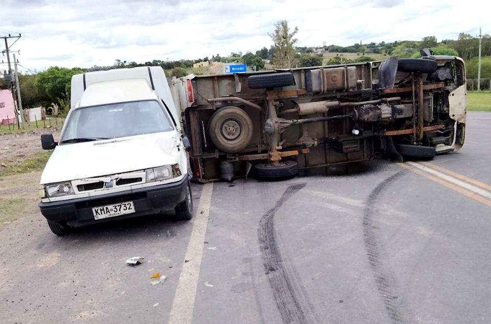 En la tarde anterior un coche matriculado en Argentina que circulaba por el camino de Los Argentinos, provocó un accidente al intentar ingresar a ruta 21. Fue allí que se encontró con un camión utilitario que circulaba por el lugar, el cual tratando de evitar el coche, también chocó con otro auto que circulaba en sentido contrario y posteriormente volcó, quedando apoyado sobre uno de sus laterales. Afortunadamente no se registraron lesionados. |