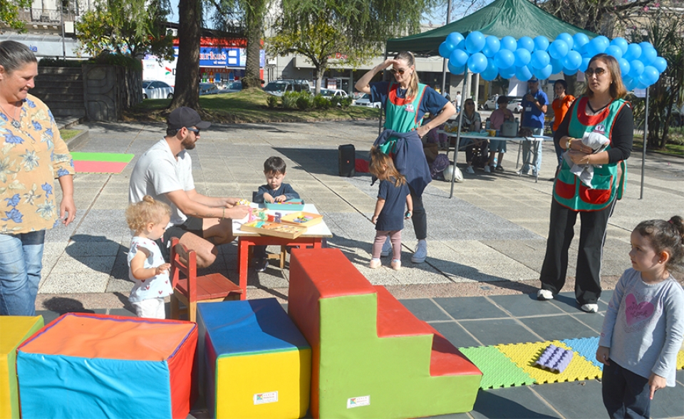 En el mes del Autismo, el Centro PVTEA y AJACEA realizaron ayer una actividad de concientización e integración en plaza Independencia. A través de sencillos juegos se fue convocando a diferentes personas de la sociedad mercedaria, estudiantes y niños que jugaron y bailaron en algunos casos, con los integrantes del Centro. |
