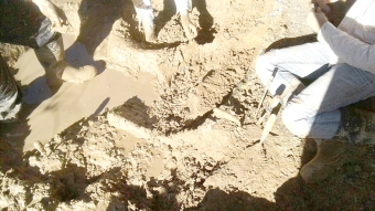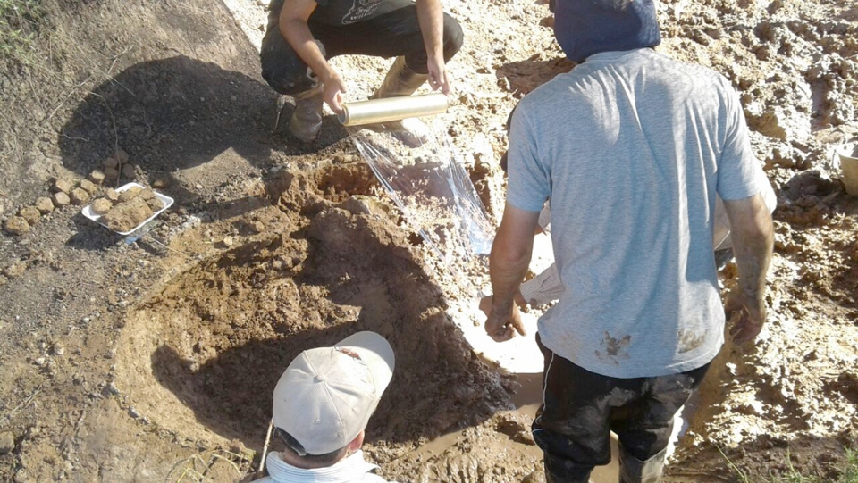 Grupo de técnicos de la Facultad de Ciencia de la Universidad de la República junto al Coordinador de Museos de la Intendencia de Soriano, Aparicio Arcaus, comenzaron a trabajar este miércoles en la extracción del animal que finalmente resultó ser un Gliptodonte igual al que ya hay en el Museo.
