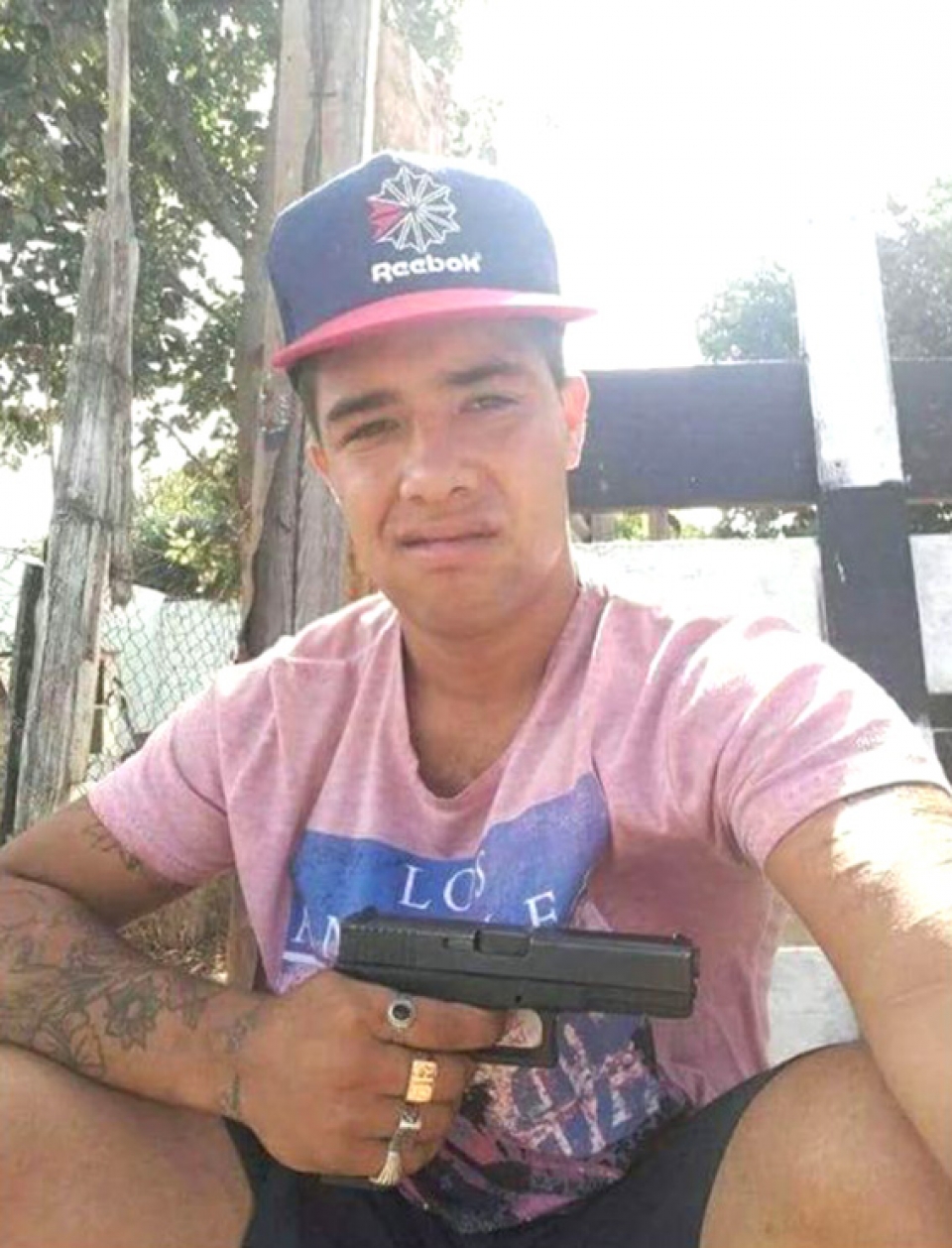 Por otro lado, también se difundió una imagen de la víctima, quien se hizo fotografiar con un arma de fuego y la inscripción "si quieren guerrear conmigo, se tienen que preparar".