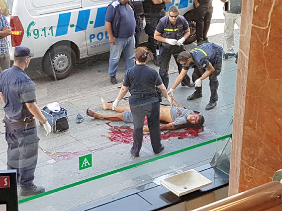 En las fotos que acompañan esta nota, pueden observarse: arriba el cadáver de un joven identificado como N.A., quien murió de varios balazos en la concurrida zona de Avda. Italia y Batlle y Ordóñez.