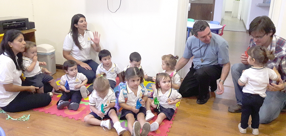 El personal está compuesto por dos docentes, auxiliar, psicomotricista, catequistas y junto al Padre Manolo tratamos de estar todos los días en algún momento con ellos, para que nos conozcan, disfruten y vayan descubriendo el sentido de casa-comunidad que es el San Miguel.