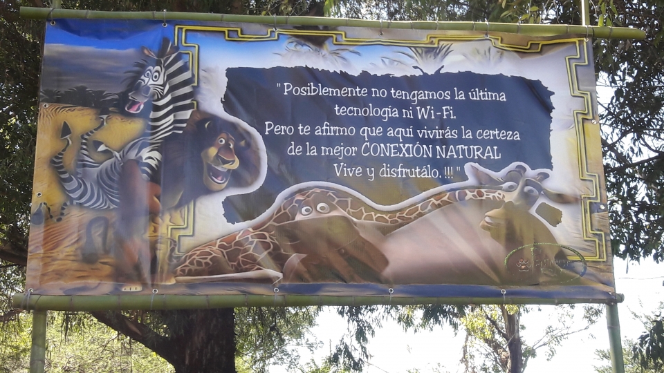 Al ingreso de este paseo, que en estos días recibió a miles de visitantes, se puede apreciar un cartel que dice: “Posiblemente no tengamos la última tecnología, ni wi-fi, pero te afirmo que aquí vivirás la certeza de la mejor conexión natural. Vive y disfrútalo”.