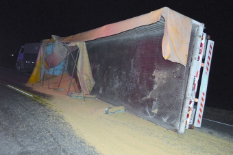 La ruta estuvo cortada por varias horas ya que se debió retirar toda la soja que quedó sobre la misma y hacer un lavado del pavimento, tarea que estuvo a cargo de bomberos de Fray Bentos.