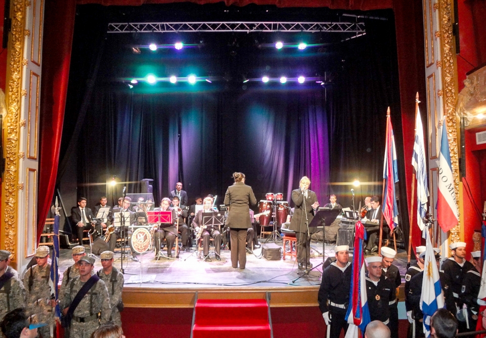 En horas de la mañana en instalaciones del Teatro Young la Orquesta Banda Municipal le puso el marco musical a la entonación de las estrofas del Himno Patrio y en el que la Profesora Susana Arocena pronunció palabras alusivas al histórico acontecimiento.