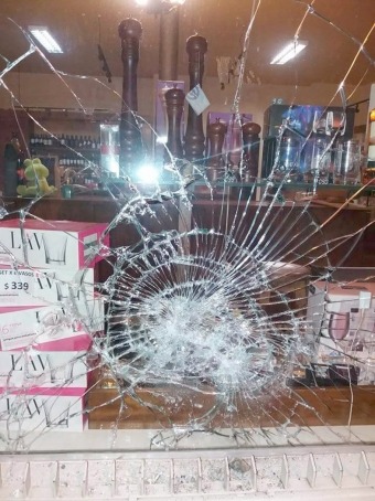 Nuevamente la vidriera de "Roble Viejo" de Colón y Giménez fue destrozada, aunque la seguridad del vidrio impidió que se llevaran mercadería. El vidrio tiene un tamaño de 2 m . x 1.80, y esta no es la primera vez que lo rompen, seguramente con el objetivo de robar, lo que hasta el momento no han podido lograr. |