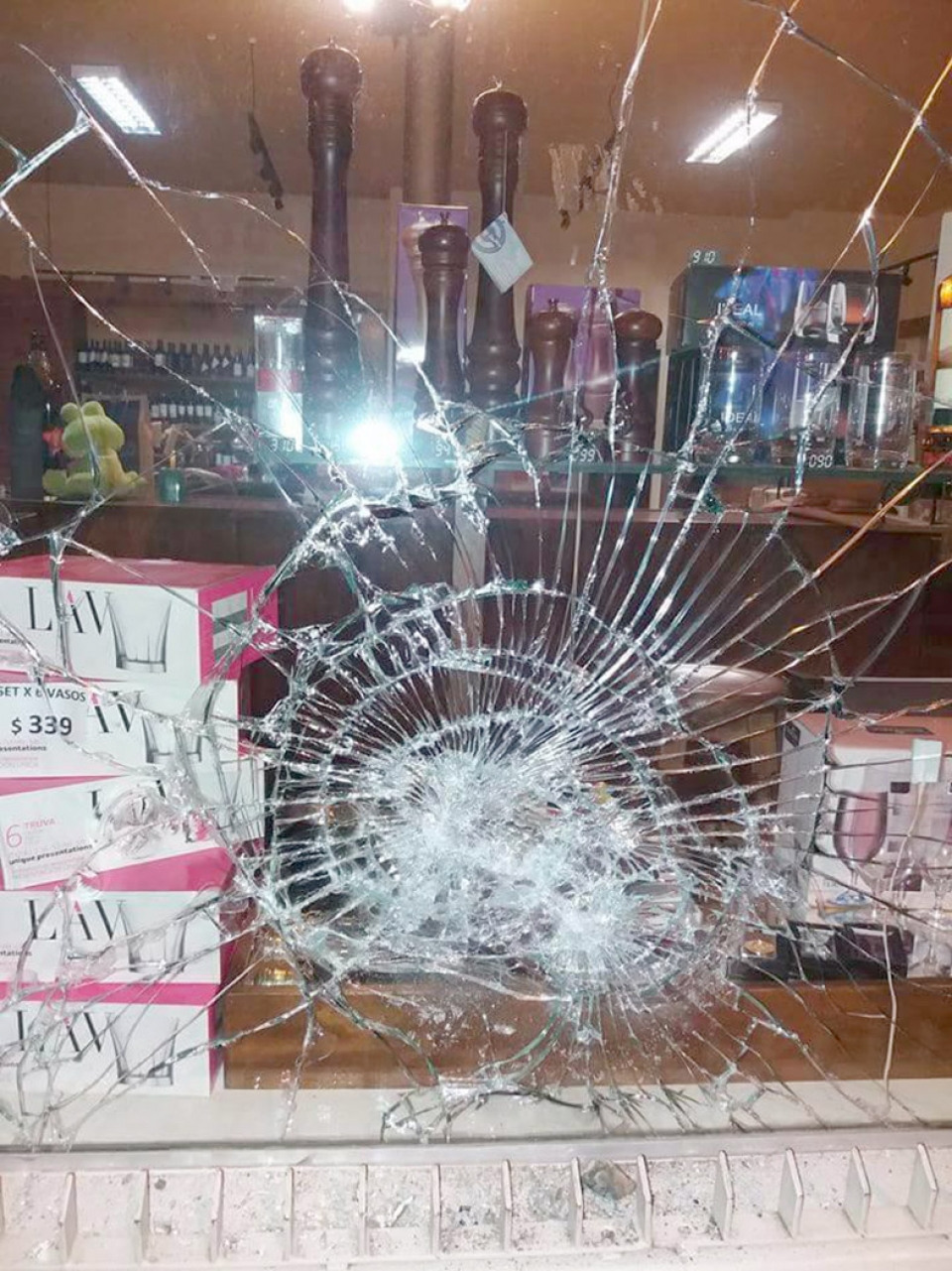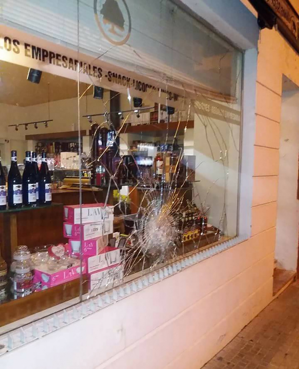 28 abr 2017 | Nuevamente la vidriera de "Roble Viejo" de Colón y Giménez fue destrozada, aunque la seguridad del vidrio impidió que se llevaran |