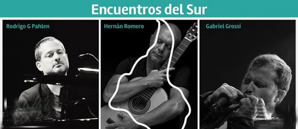 Bajo el título “Encuentros del sur” se anuncia un espectáculo a cargo de tres virtuosos de la música: Rodrigo G. Pahlen, Hernán Romero y Gabriel Grossi junto a músicos invitados como Martín Iabarburu y Nacho Mateu.