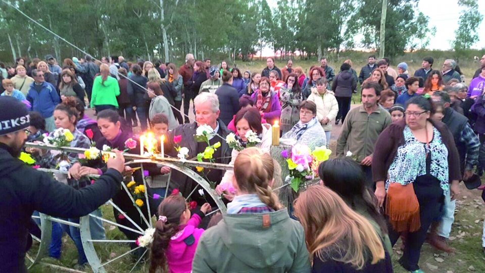 La pequeña comunidad sigue conmocionada por el horrendo crimen de María Cristina Viera, asesinada en la madrugada del pasado domingo 14 con un hacha por un joven de 20 años. Ayer más de un centenar de vecinos caminaron hasta la chacra que servía de residencia a la señora, donde colocaron ofrendas florales y encendieron velas en los accesos.