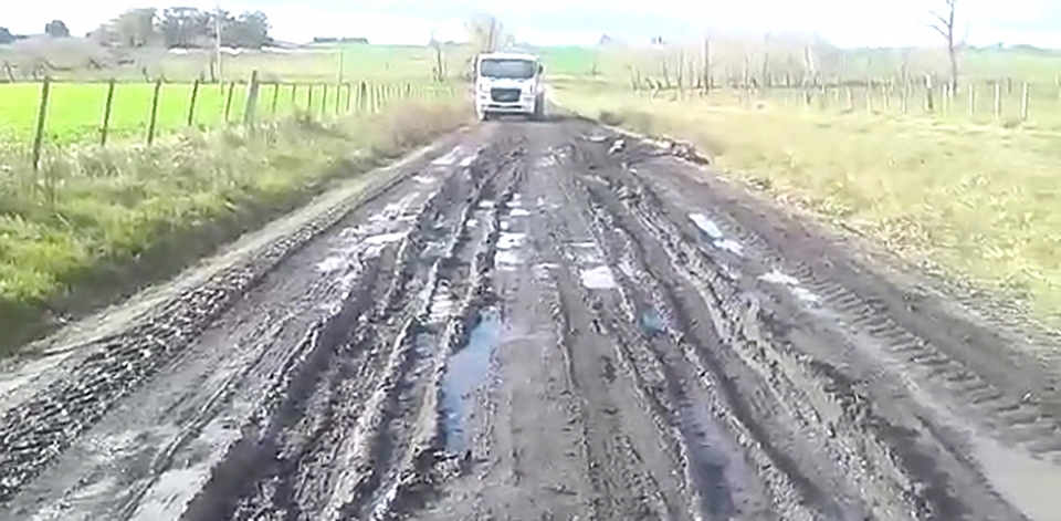Después de haber anunciado en el video que estaba aguardando a primera hora de la tarde la llegada de un tractor para que lo sacara, argumentó que todos los días de lluvia quedan en la misma situación, con el peligro correspondiente, ya que los camiones cisterna se van para los costados y corren el riesgo de volcar.