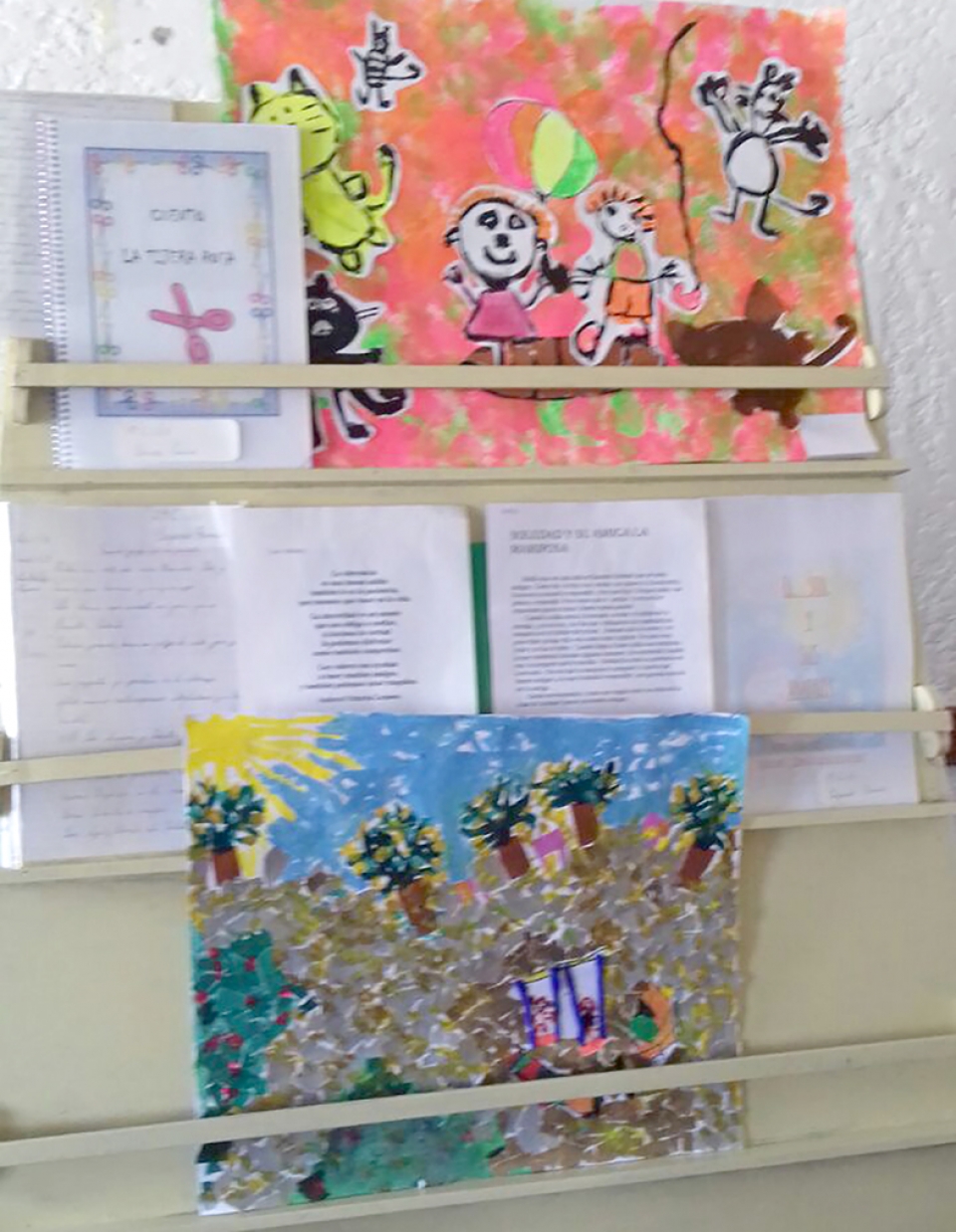En este año los niños de 4 y 5 años realizaron un trabajo de expresión plástica colectivo con temática libre, mientras que los de 1º y 2º año crearon un libro de cuentos en forma colectiva; los de 3º y 4º escribieron sobre los temas “Cuando juego con mi mascota” y “Jugando con un amigo”, mientras que a los de 5º y 6º se les sugirió una narración o poema donde debían resaltarse los valores de buena convivencia.