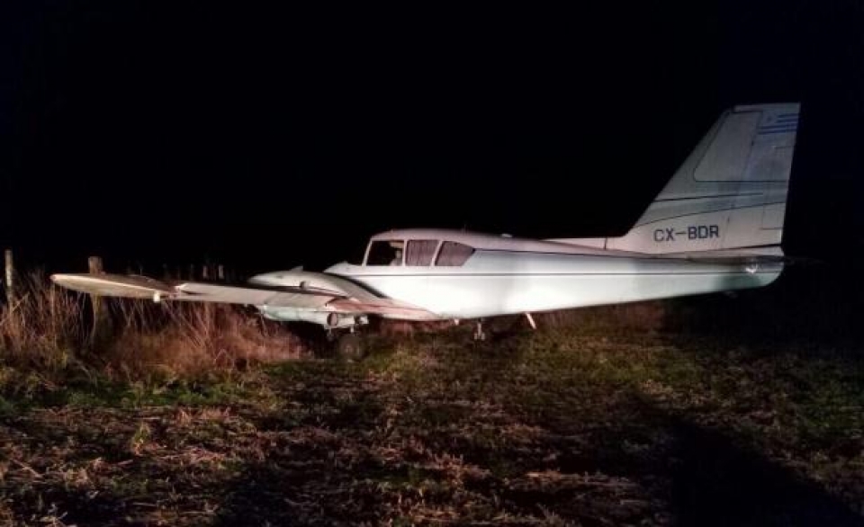 Cuando los agentes llegaron al lugar solo encontraron la avioneta: un bimotor Piper PA-23-35, matrícula CX-BDR de Uruguay, color celeste y blanco.