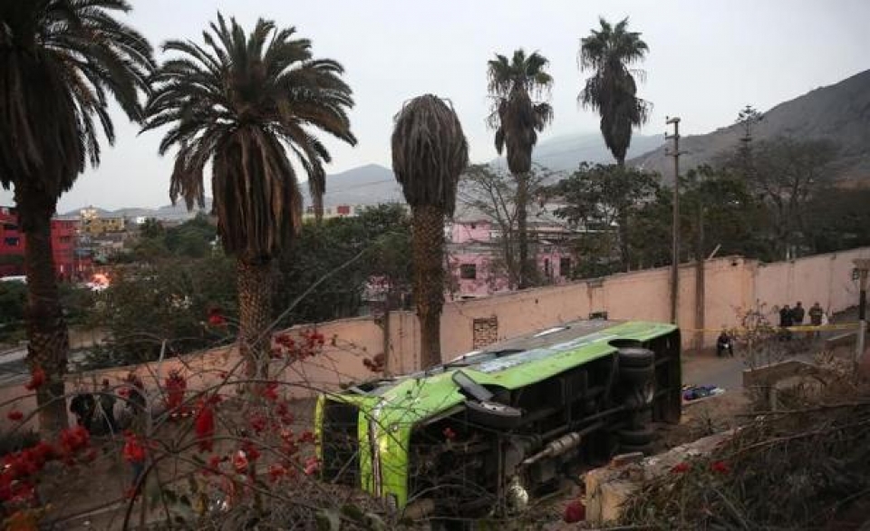 Siete personas murieron y más de 20 resultaron heridas al volcarse este lunes un bus turístico en Lima cuando bajaba del cerro San Cristóbal, en el distrito de Rímac, informó la Policía.