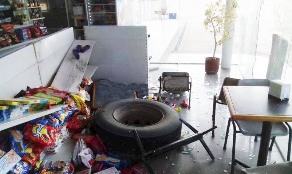 destrozó los vidrios y causó también destrozos en el mini market, pero