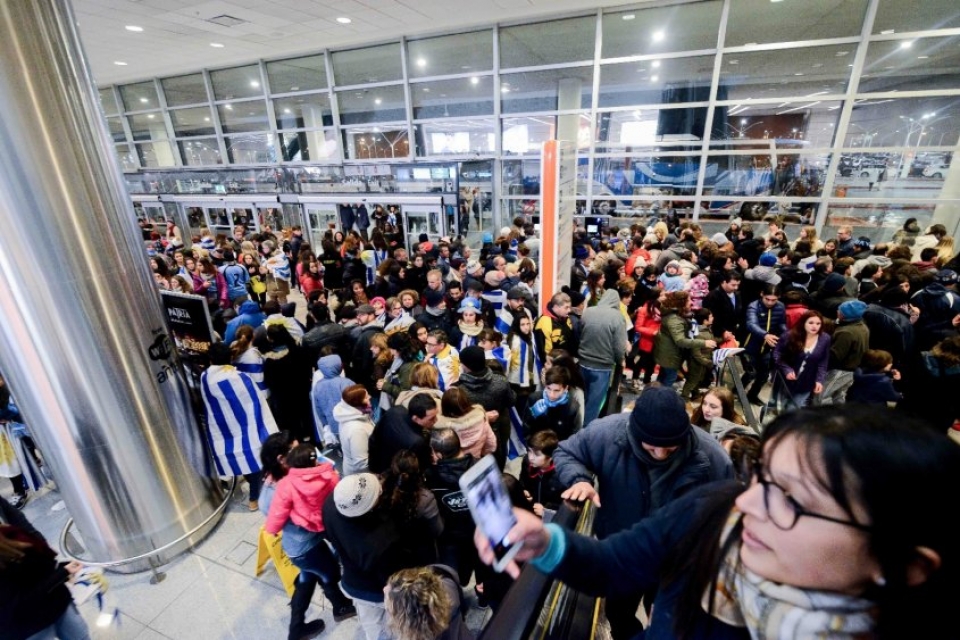 El vuelo que transportaba a la selección uruguaya se atrasó una hora y entonces, pese a que estaba previsto que llegara sobre las dos de la mañana, el público tuvo que esperar una hora más para ver a sus ídolos.
