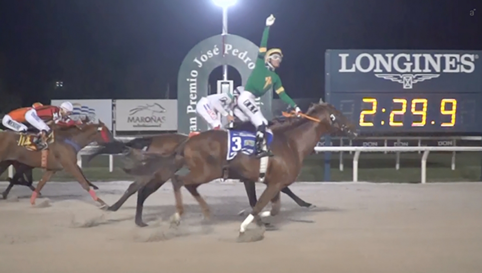 El jockey uruguayo Pablo Rodríguez con First Thing del stud La Orden se quedó ayer con la edición 121 del Gran Premio José Pedro Ramírez y clasificó al Gran Premio Latinoamericano de marzo en Santiago. Con un tiempo de 2:29:87 fue el más rápido en recorrer los 2.400 metros. |