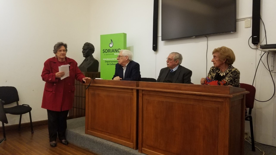 En la sala multimedia de la Biblioteca Giménez se presentó en la tarde de hoy el libro "Caminos Prestados" que reune cuentos de los mercedarios Gladys Petraglia y Carlos Rivarola que asisten al taller de escritura "Odiseo" que funciona en el Club Soriano de Montevideo. Una exitosa actividad que reunió a mucho público que disfruto de la lectura de varios cuentos por sus autores y de la música a cargo de María y Jorge Del Pino. |