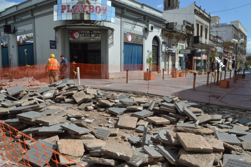 Tras iniciarse los primeros trabajos para desmontar la capa de rodamiento de un tramo de la semipeatonal de Mercedes comprendido por Ferreira Aldunate entre Colón y Artigas, se comenzó a analizar en qué situación estaba el piso, contándose ya con el material necesario para comenzar con el cambio de los baldosones por los bloquines de hormigón.