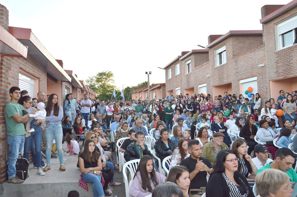 49 familias de las más diversas actividades sociales y laborales, llegan a un nuevo año con su techo propio. Momentos muy emotivos se vivieron en la ceremonia inaugural que contó con la presencia del Intendente Agustín Bascou.