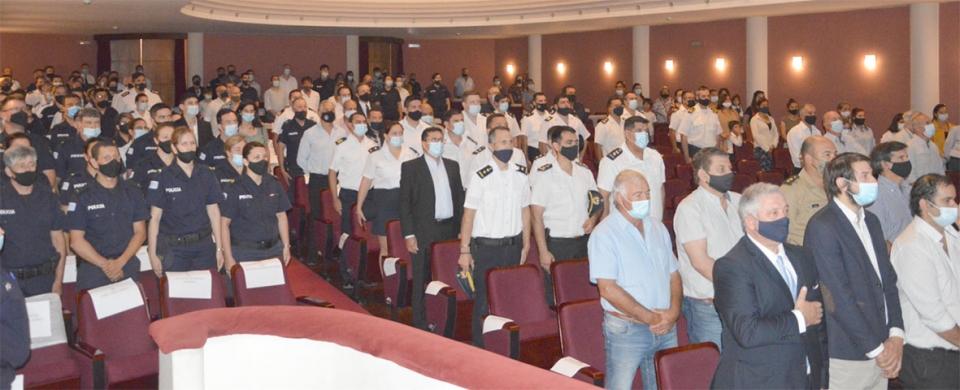 En el Teatro 28 de Febrero se cumplió el acto conmemorativo del 192º Aniversario de la Policía Nacional. Previamente, el comando de la jefatura junto a autoridades departamentales colocó una ofrenda floral en Plaza Artigas al pie del monumento al prócer.
