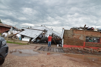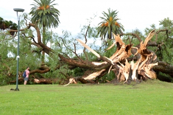 En la tarde de hoy sorprendió en Mercedes una turbonada que alcanzó un máximo de 122 kilómetros por hora, acompñada de lluvias que registró 36 milímetros en unos 10 minutos, según informó la Estación Meteorológica de la ciudad. Numerosos daños se ocasionaron en diversos puntos de la ciudad, como voladuras de techos, caída de paredones, árboles, cables, calles anagadas entre otros. |