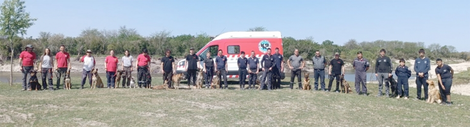 En Argentina se realizó un exitoso encuentro en el que participaron adiestradores de perros de Uruguay y el anfitrión, intercambiando conocimientos y realizando diferentes pruebas que permiten enriquecer la labor que cada uno realiza en su zona. Junto al grupo K-SAR estuvo el mercedario Sergio Camacho junto a su pastora belga Zooe, quien destacó que “en cada oportunidad seguimos aprendiendo, viendo nuevos procedimientos para adiestrar a nuestros perros y en este caso Zooe tuvo un buen desempeño en la búsqueda de rastros específicos y logró cumplir con la tarea asignada que era encontrar en una zona de costa con mucha arena y arbustos, a una persona que supuestamente estaba perdida. La única pista que tuvimos para trabajar fue un celular con el que el animal pudo obtener el olor de la persona y tras un recorrido a pleno sol, halló al dueño del teléfono. Se evaluaron las tareas de todos los perros participantes y el último día se hizo un simulacro en una isla sobre la caída de un avión y los canes en sus diferentes propuestas localizaron a sobrevivientes y personas que supuestamente habían fallecido, escondiéndose en lugares estratégicos muestras cadavéricas para que el animal pueda trabajar sin inconvenientes. Tener perros preparados para búsqueda y rescate es esencial y esto quedó remarcado en este encuentro donde cada uno de los instructores presentó diferentes razas que se especializan en rastreos específicos en grandes áreas, otros que hacen tareas de obediencia y otros, como el caso de Zooe, cumplen con un rastro específico”. |